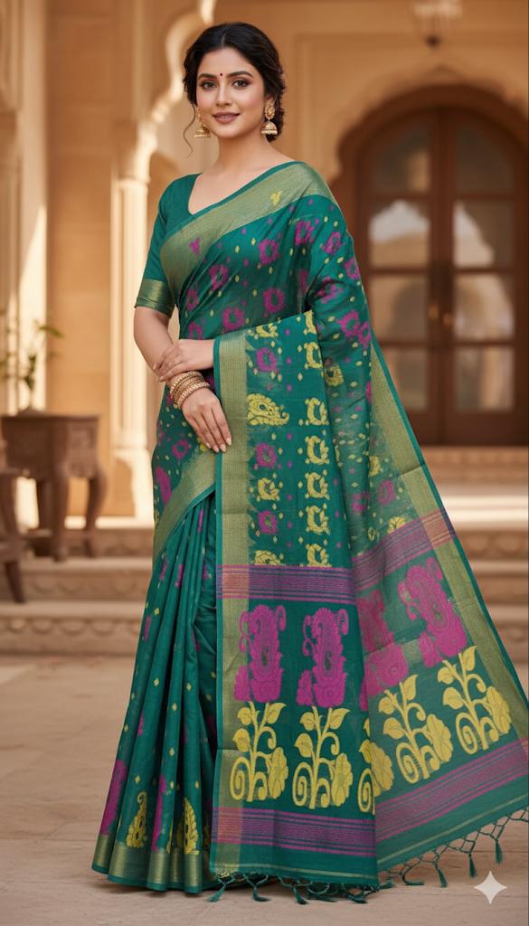 This saree is perfect for weddings, festive occasions, and cultural events, offering a blend of sophistication, comfort, and timeless beauty.