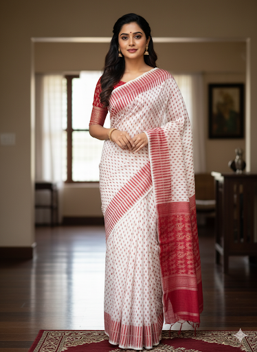 This saree is perfect for weddings, festive occasions, and cultural events, offering a blend of sophistication, comfort, and timeless beauty.