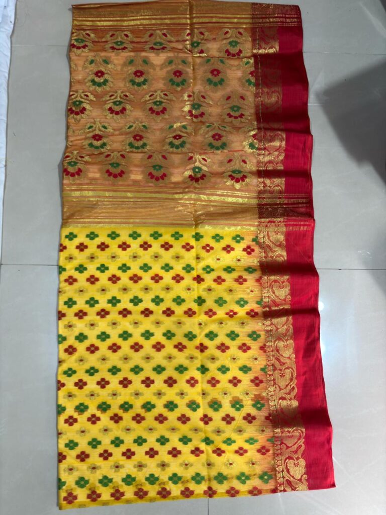 Be the first to review “Allover Tussore Jamdani Yellow-Red”