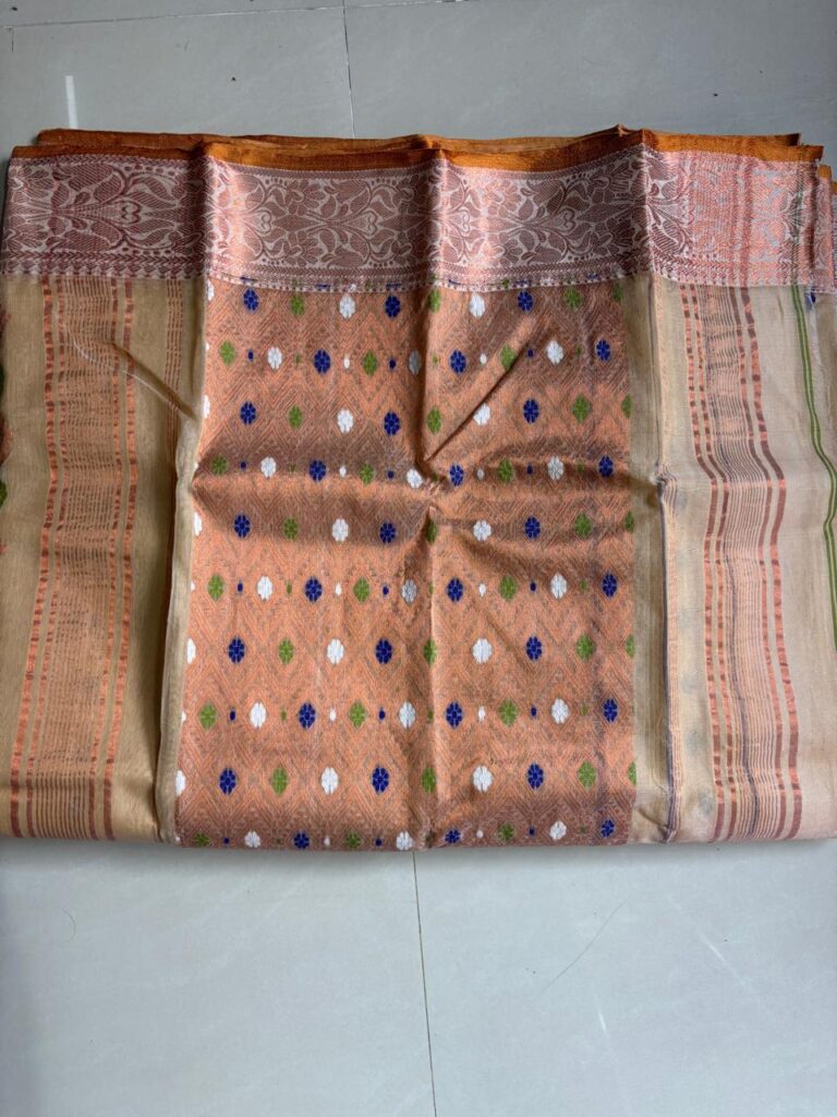 Tussore sarees are made from wild silk known for its natural gold sheen and rich texture. These sarees are lightweight, breathable, and elegant, making them perfect for both festive and formal occasions. Handwoven by skilled artisans, Tussore sarees often feature intricate zari borders, block prints, or hand-painted designs, showcasing a blend of traditional craftsmanship and timeless beauty.