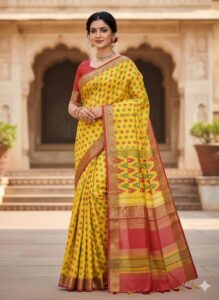 Be the first to review “Beautiful Tussore Design 2 Yellow Red”