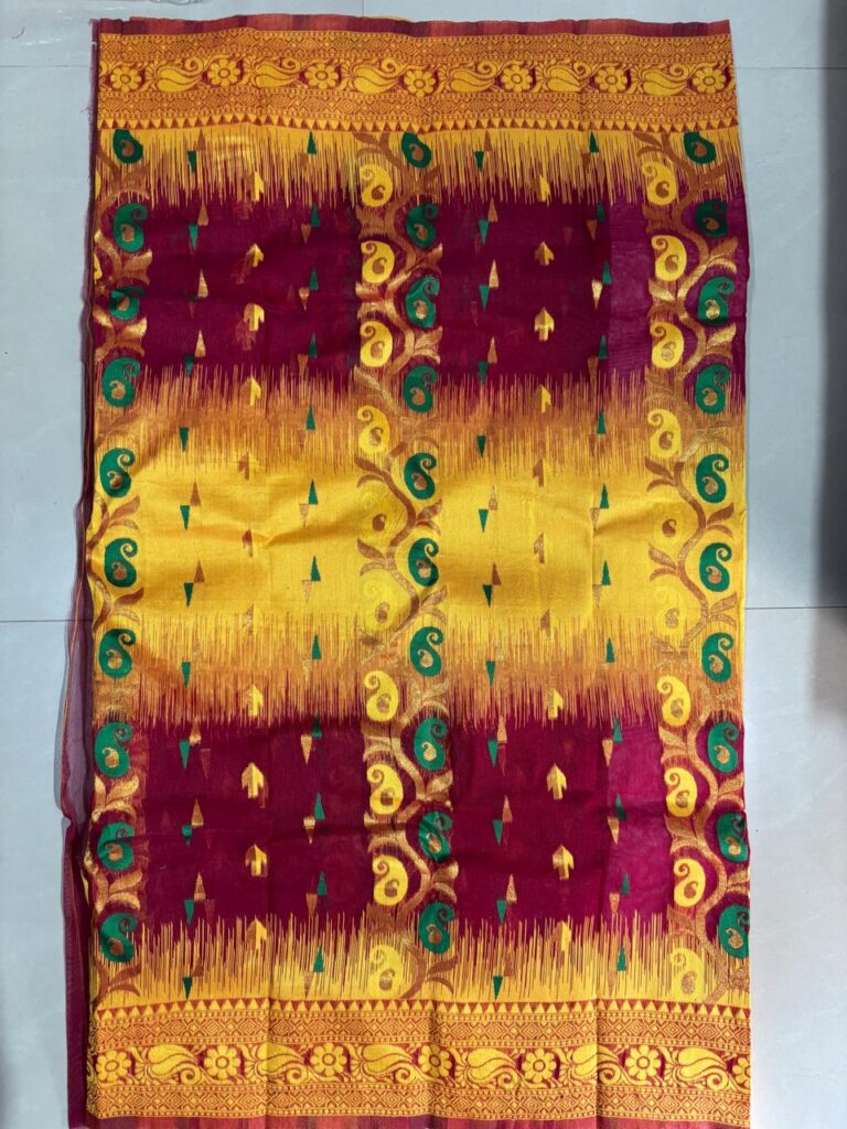 Tussore sarees are made from wild silk known for its natural gold sheen and rich texture. These sarees are lightweight, breathable, and elegant, making them perfect for both festive and formal occasions. Handwoven by skilled artisans, Tussore sarees often feature intricate zari borders, block prints, or hand-painted designs, showcasing a blend of traditional craftsmanship and timeless beauty.