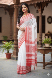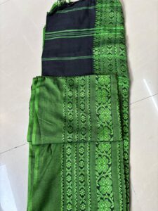 Begampuri is a traditional handwoven cotton fabric from West Bengal, known for its lightweight, soft texture, and distinctive border designs. Made on handlooms by skilled artisans, Begampuri sarees and fabrics are comfortable for daily wear and showcase elegant simplicity with vibrant colors and geometric motifs.