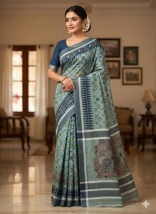 Woven on a fine cotton base, it is lightweight, soft, and breathable, ideal for festive occasions, cultural events, and casual traditional wear. The crisp diamond motifs combined with vibrant colors add a touch of elegance and charm to the saree’s overall appearance.