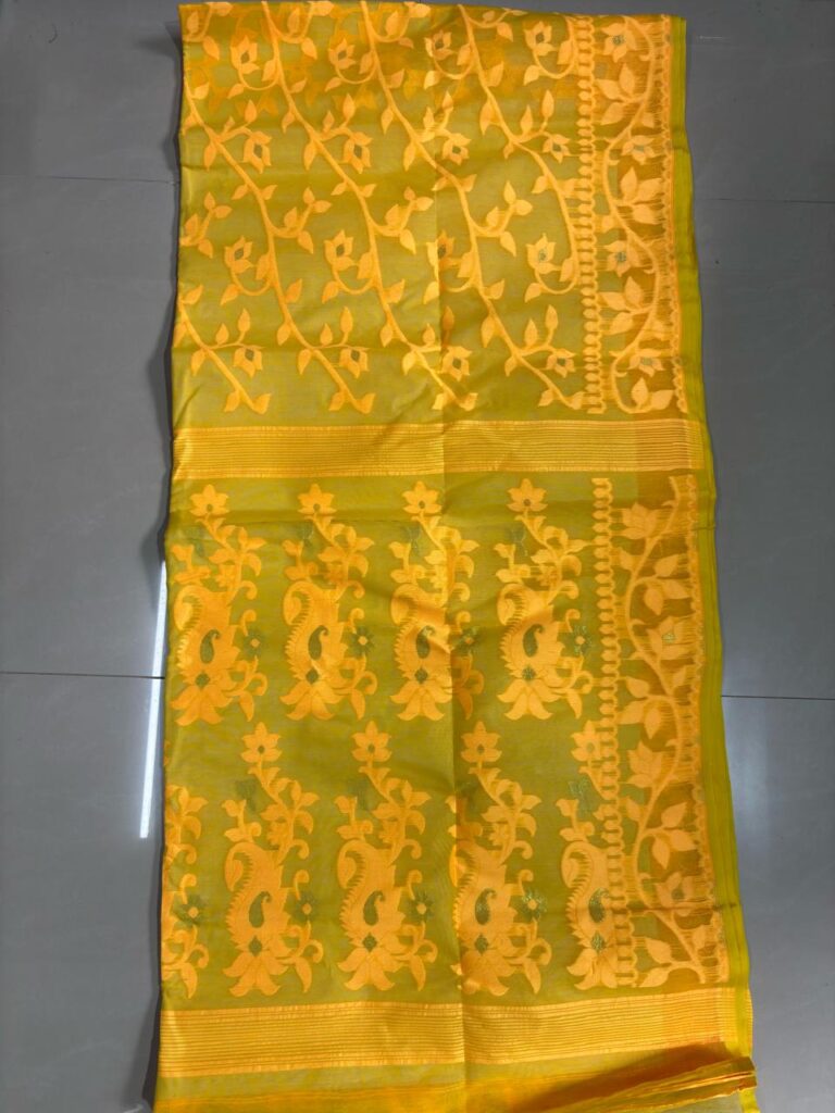 Shankhachur Jamdani is a traditional handwoven saree known for its intricate floral patterns inspired by the Shankhachur flower. Crafted on fine cotton or silk, it showcases delicate motifs woven directly into the fabric using the extra-weft technique, making each piece unique. Lightweight and elegant, Shankhachur Jamdani sarees reflect timeless Bengali heritage and are perfect for festive and cultural occasions.