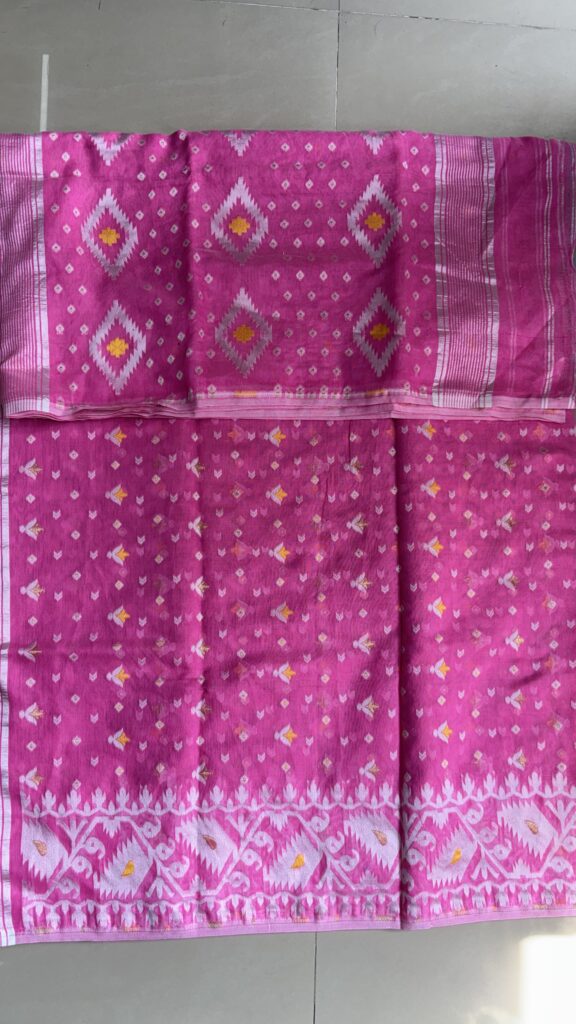 Soft Jamdani is a type of lightweight, finely woven Jamdani saree made from ultra-soft cotton or cotton-silk blend. It is known for its smooth texture, airy feel, and elegant drape, making it extremely comfortable for all-day wear—especially in warm weather.