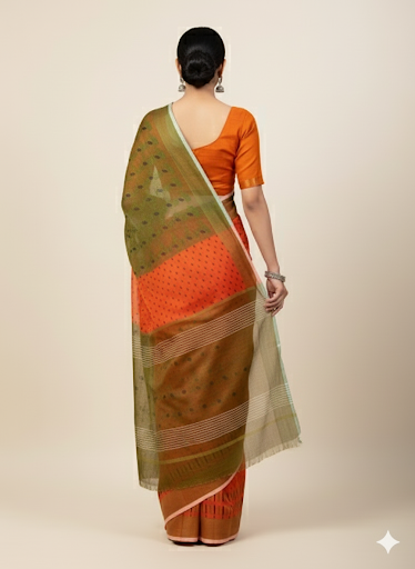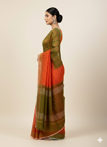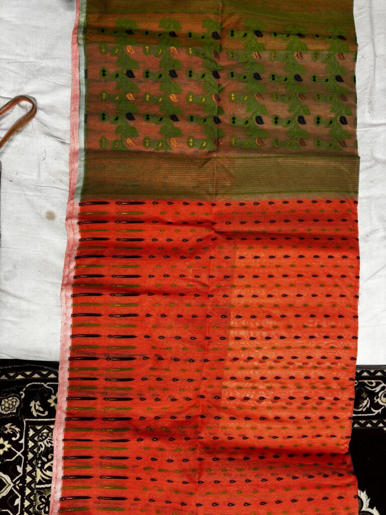 Tip buti jamdani Bottle Green-Vibrant Orange