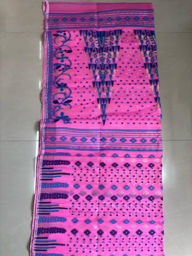 Tower Jamdani is a unique handwoven saree known for its tall, tower-shaped motifs that symbolize strength and elegance. Made with fine cotton or silk, it showcases intricate patterns created using the traditional Jamdani weaving technique. Lightweight yet striking, Tower Jamdani adds a touch of heritage charm to any occasion.